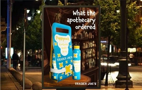 To begin, I had to do market research into who would sell a product like Poppycock and the most likely candidate was Trader Joe’s. Their packaging is fun, vibrant, and bold. Along with that, they’re known for carrying different stock than average grocers and for having a wider range of independent brands on their shelves, so imagining Poppycock as a subset of them fit. This mood board is the main source of inspiration I had in doing the project.