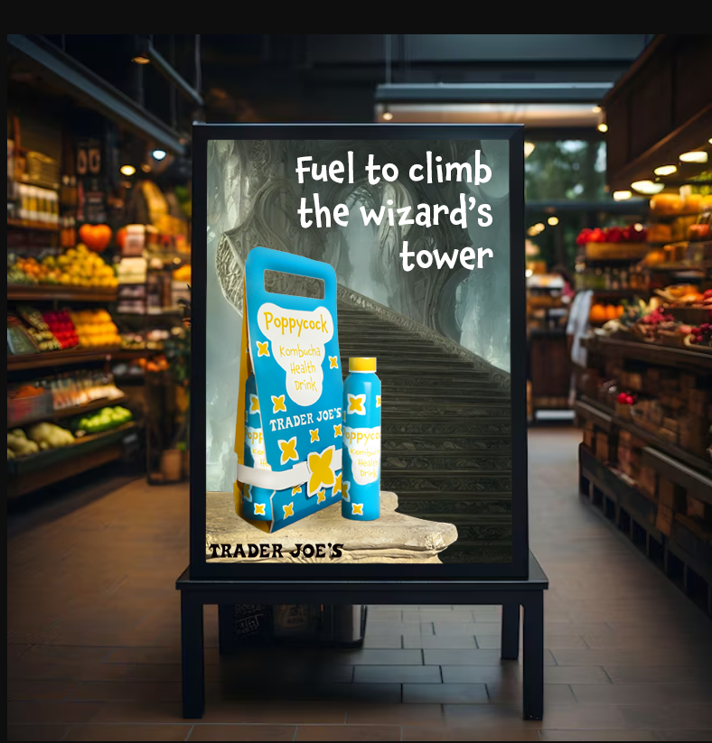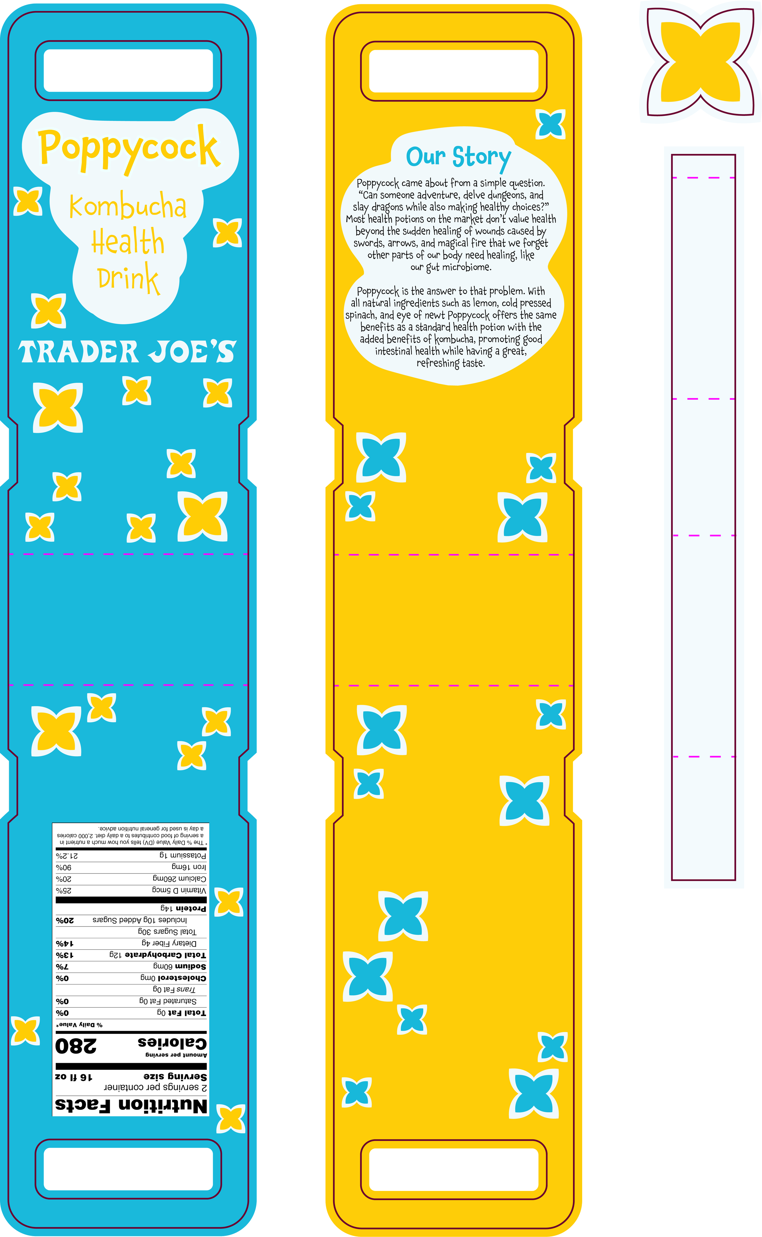 The concept of Poppycock came from my love of fantasy writing and fun healthy beverages. A lot of health food is designed in a simple and sleek way and I sought to make a more unique and fun beverage that good for you.